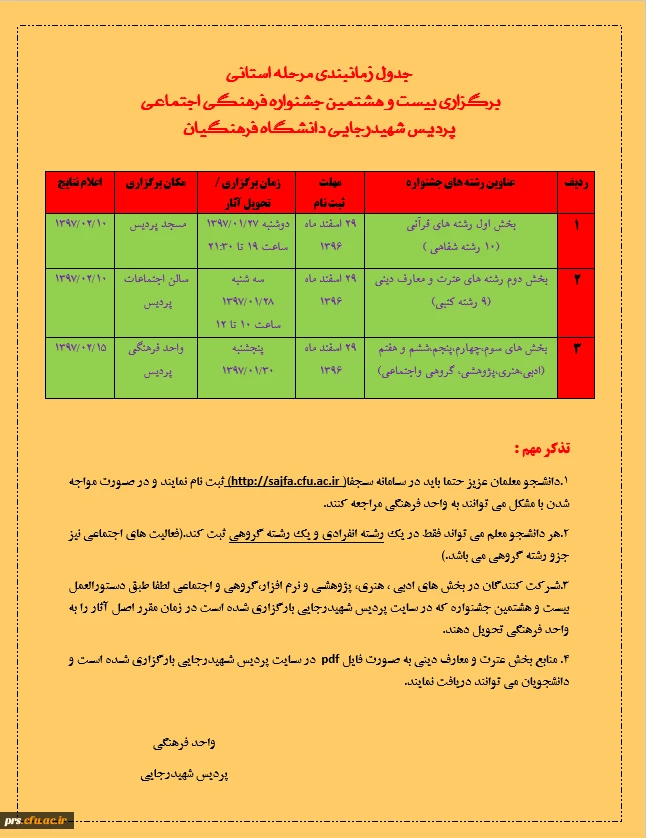امتیاز دهید : جدول زمانبندی مرحله استانی بیست و هشتمین جشنواره فرهنگی اجتماعی 2 سهشنبه 22 اسفند 1396 ساعت 11:06