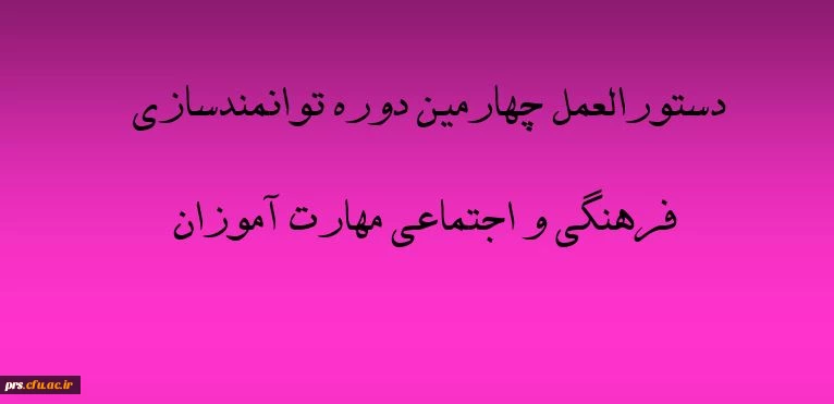امتیاز دهید : دستورالعمل و شیوه نامه چهارمین دوره توانمندسازی فرهنگی و اجتماعی مهارت آموزان 3 چهارشنبه 8 خرداد 1398 ساعت 10:48